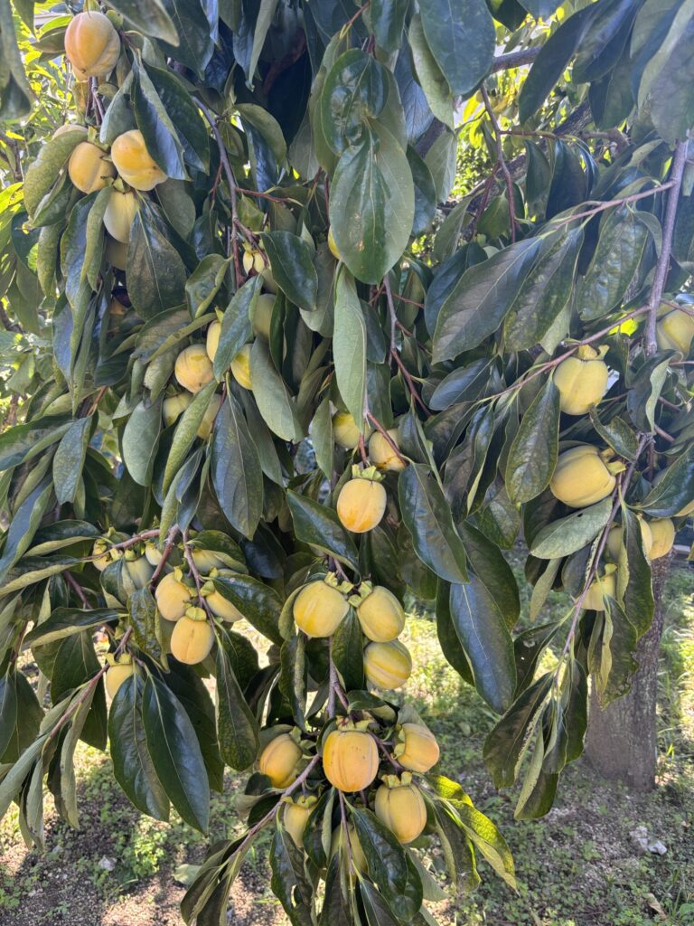 干し柿にする西条柿が、少しずつ黄色くなってきました。