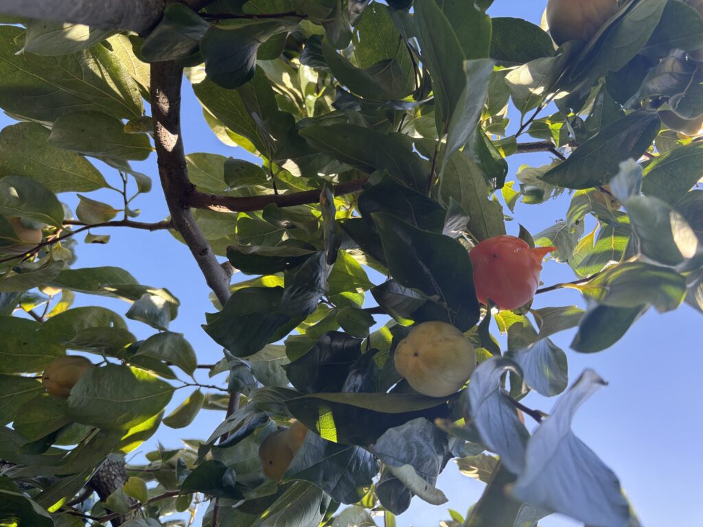 アゲハの卵と西条柿 ― 夏の名残と秋のはじまり