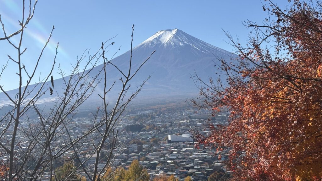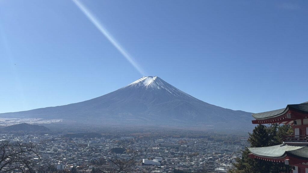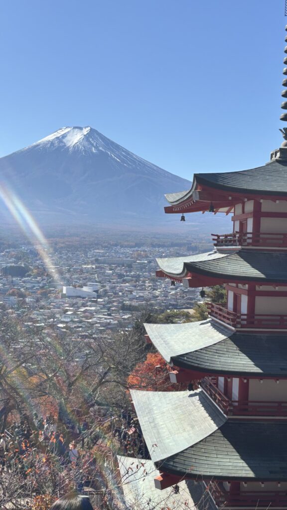富士山と五重塔、そして紅葉が織り成す美しい風景が人気で、海外からの観光客で溢れていました。