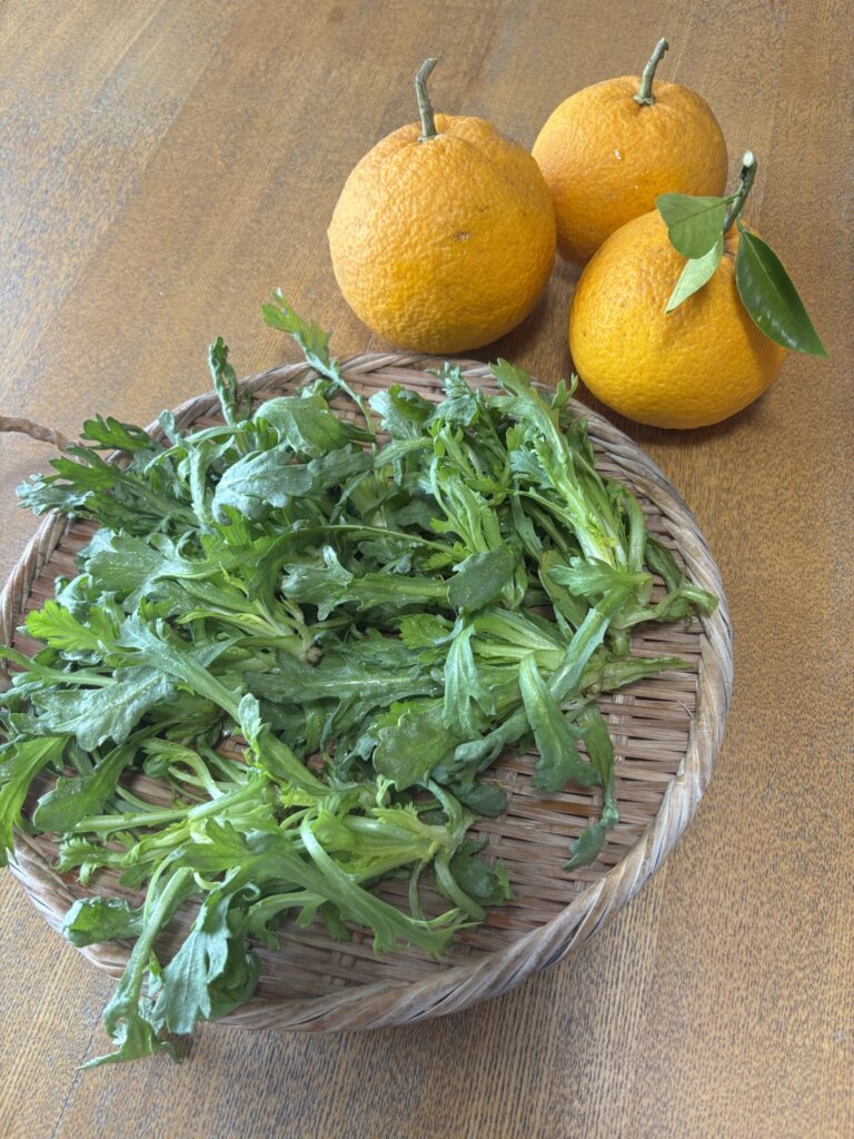 サラダ春菊も収穫して、お鍋に。
