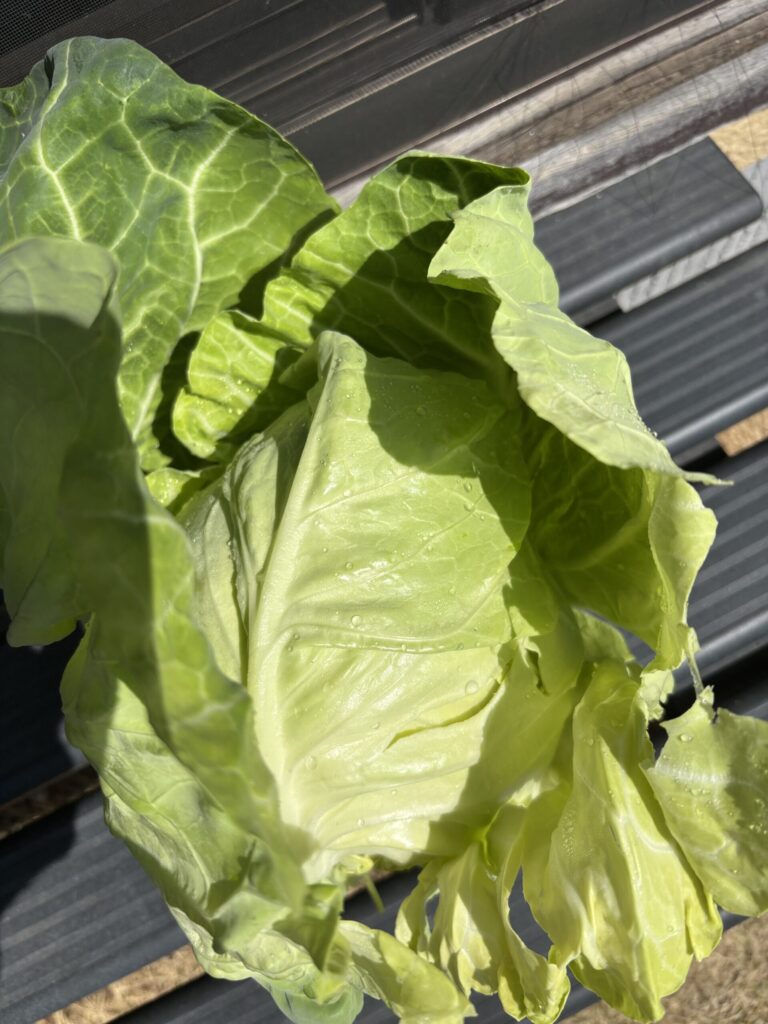 畑ではキャベツを収穫しました。