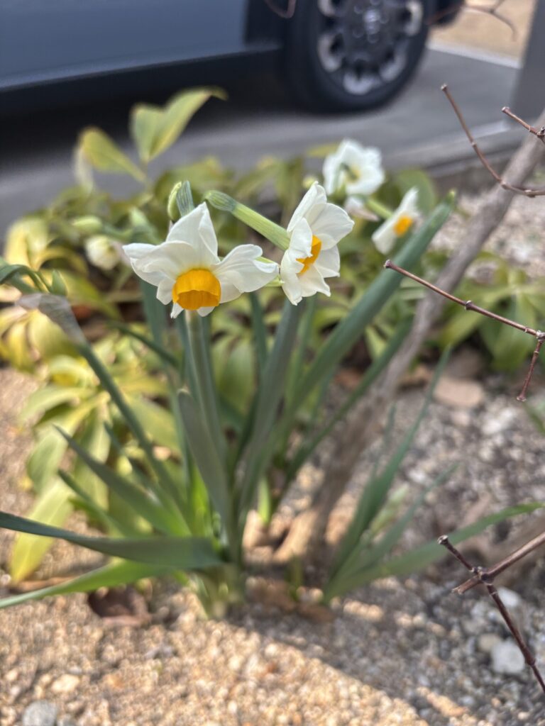 水仙は咲き、梅の蕾はふっくらしてきました。